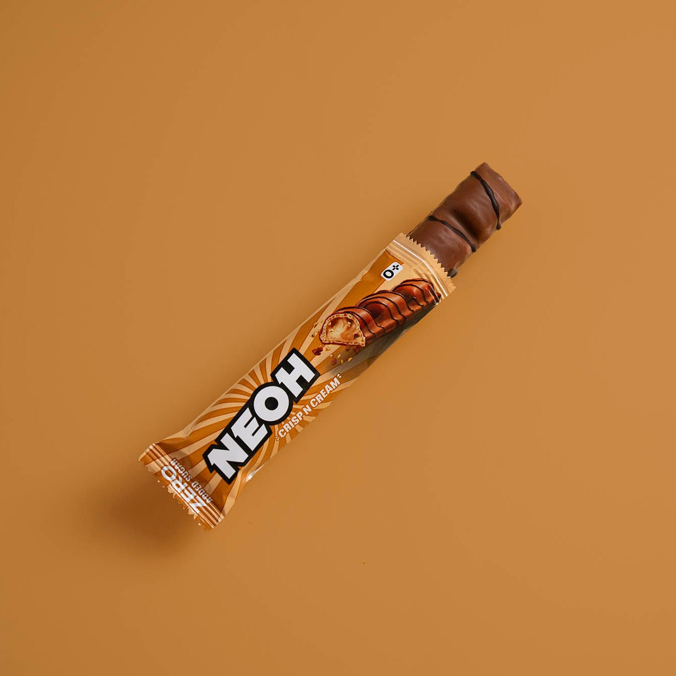 New to the team: the CRISP N CREAM – the new star in the NEOH sky. A crispy wafer filled with deliciously fluffy hazelnut cream, covered in smooth chocolate and, as always, with ZERO Added Sugar. Forget comparable products: same indulgence, sugar not a must!