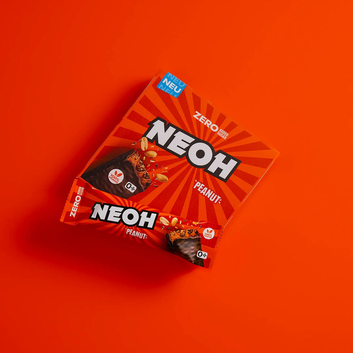 Peanut bar with caramel flavour, covered with 21% cocoa coating without added sugar. With sweeteners. Ingredients: Peanuts (41%), bulking agent: polydextrose; cocoa butter, inulin, hydrolyzed oat flour, soy protein isolate, humectant: sorbitol; dextrin, humectant: glycerol; coconut oil, cocoa mass, salt, starch, flavourings, pea protein, emulsifier: lecithins, sweetener: sucralose; antioxidant: tocopherol-rich extracts; acidity regulator: sodium citrate. May contain traces of tree nuts and milk. May contain shell fragments. May have a laxative effect if consumed excessively. Contains naturally occurring sugars. Vegan.
